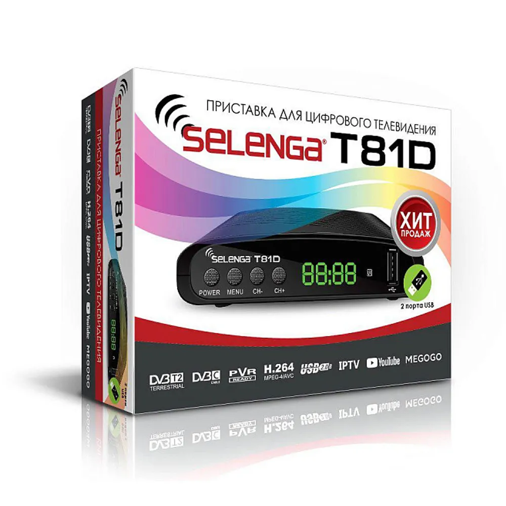 Комплектация: приставка, пульт ДУ, кабель 3,5 Jack -3RCA, батарейки ААА, блок сетевого питания, руководство пользователя на русском языке, гарантийный талон.